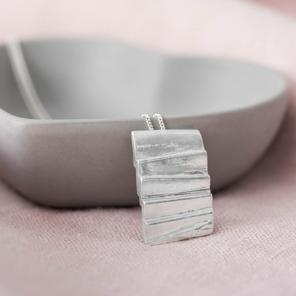 This is one of my favourites because of its tactile quality and its boldness in its design. handcrafted in fine silver and hanging on a 45cm belcher chain of sterling silver. If you prefer a different style of chain or a different length, do let me know and I will do my best to accommodate.