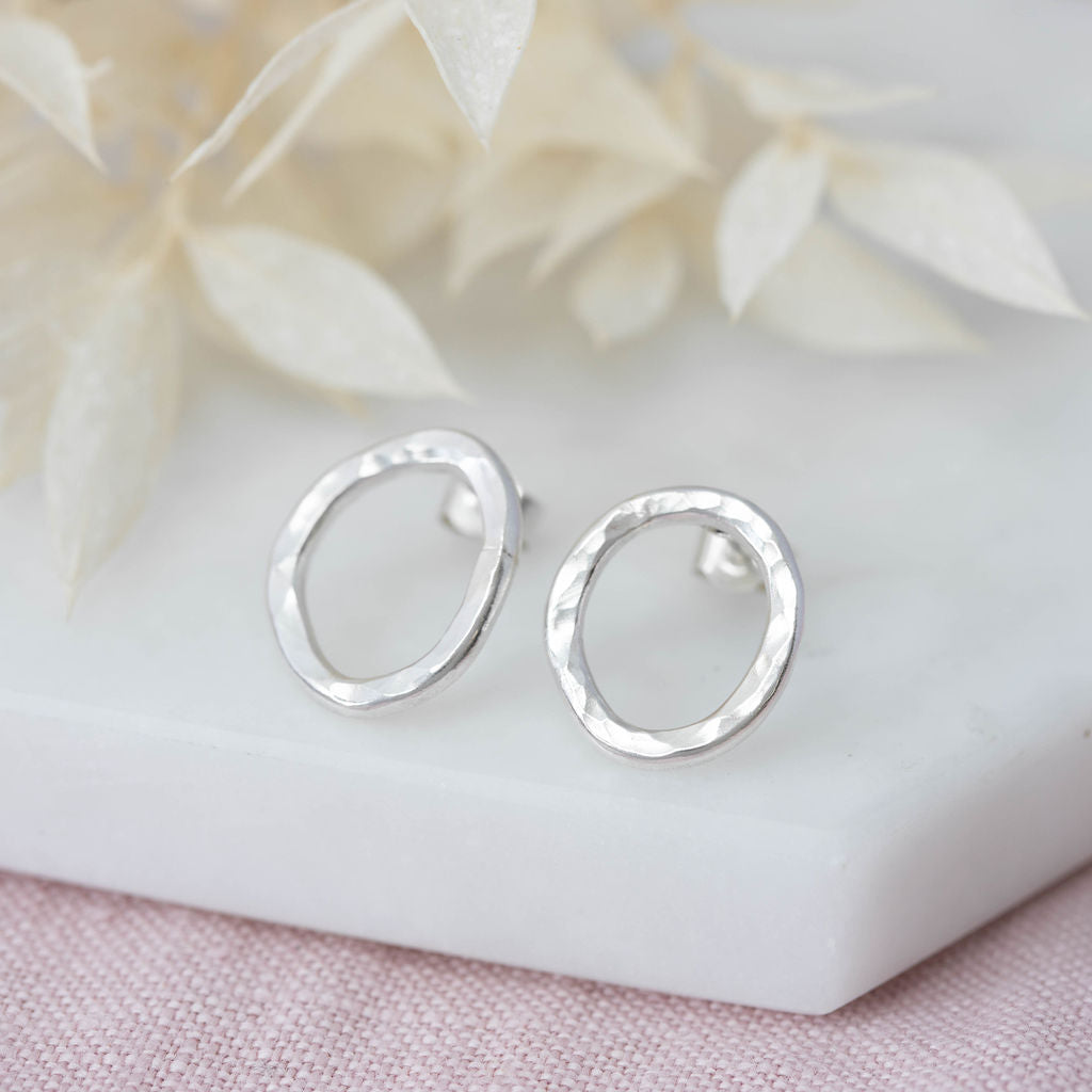 Sterling silver organic circular earrings
